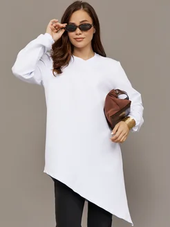 Лонгслив удлиненный базовый с асимметрией больших размеров