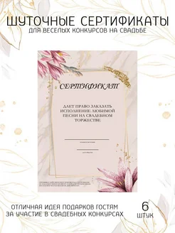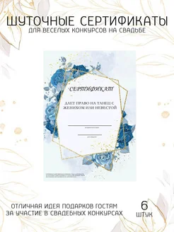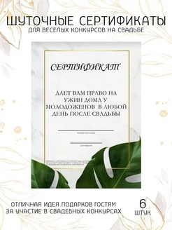 Шуточные сертификаты для конкурса на свадьбу - 6 штук