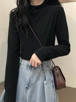 Чёрный облегающий лонгслив с горлом и длинным рукавом