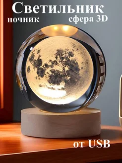 Ночник детский светодиодный светильник 3D Луна шар