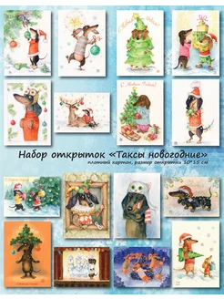 Открытки для посткроссинга "Таксы новогодние" (16 шт)