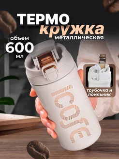 Термокружка для кофе автомобильная с трубочкой белая 600мл