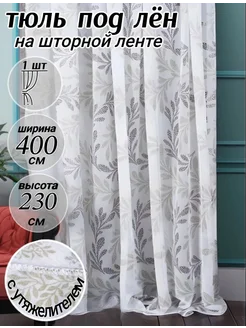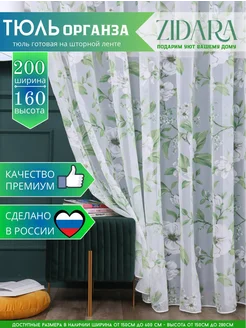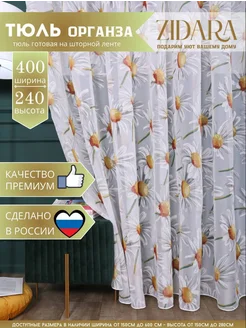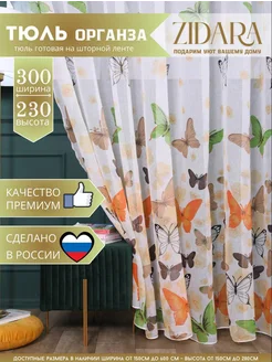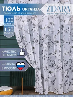Тюль в кухню короткая органза цветочная 300х150 с рисунком