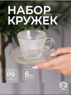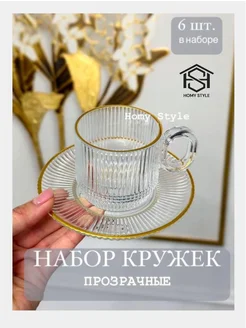 Чашки для чая и кофе прозрачные 6 шт. по 170мл