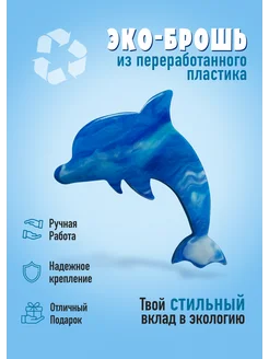 Эко Брошь Дельфин из переработанного пластика синяя