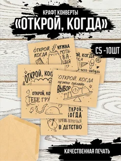 Подарочный набор крафт конвертов "Открой когда" ЧБ