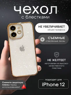 Прозрачный чехол на айфон 12 с блестками. Золото