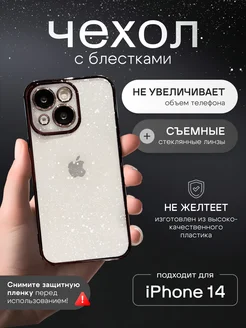 Прозрачный чехол на айфон 14 с блестками. Черный