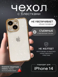 Прозрачный чехол на айфон 14 с блестками. Золото
