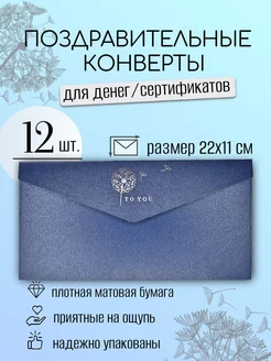Поздравительные конверты синие"To You" 12 штук 220х110 е65