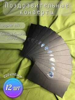 Набор подарочных конвертов разноцветных 12 штук 220х110 е65