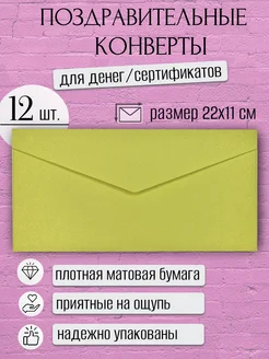 Подарочные конверты салатовые 12 штук 220х110 е65