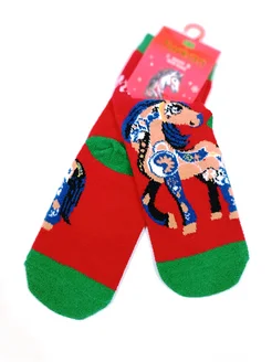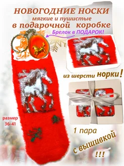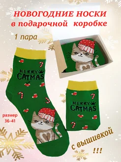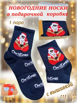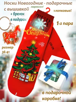 Носки новогодние с вышивкой люрексом в подарочной упаковке