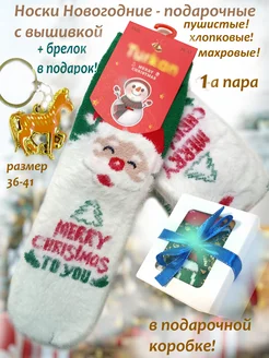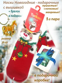 Носки подарочные махровые с вышивкой новогодние в коробке
