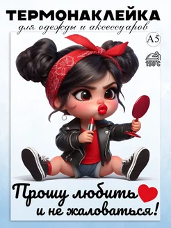 Термонаклейка на одежду Прошу любить и не жаловаться