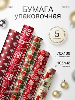 Упаковочная бумага новогодняя для подарков набор 5шт красная