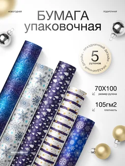 Упаковочная бумага новогодняя для подарков набор 5 шт синяя