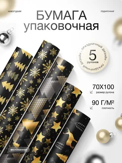 Упаковочная бумага новогодняя для подарков набор 5шт черная