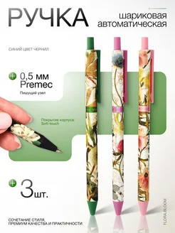 Ручка шариковая автоматическая с цветами набор 3 штуки
