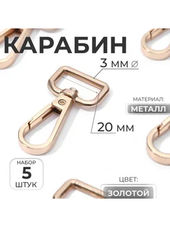 Металлический карабин золотой 45 х 25 мм 20 х 3 мм, 2 шт
