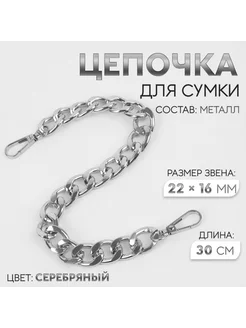 Цепочка для сумки с карабинами, серебряная 30 см, 2 шт