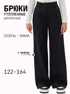 Утепленные брюки школьные с начёсом палаццо
