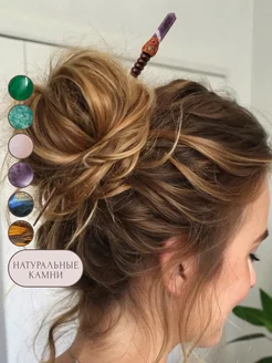 Деревянная заколка-шпилька для пучка с амазонитом