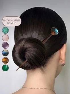 Деревянная заколка-шпилька в пучок с лабрадоритом