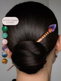 Деревянная заколка-шпилька для пучка с аметистом