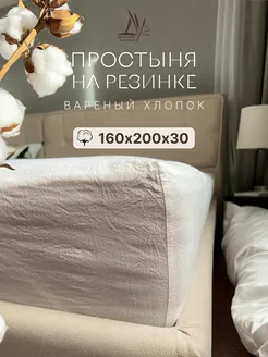 Простыня на резинке Вареный хлопок 160*200*30 см
