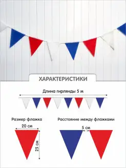 Гирлянда из флажков, триколор, 5м