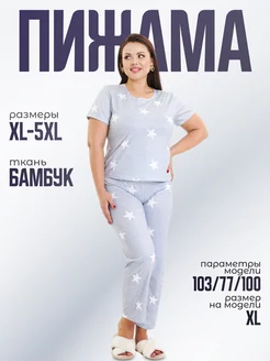 Пижама со штанами больших размеров шелковая