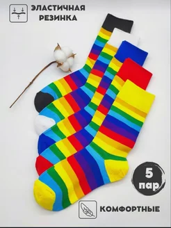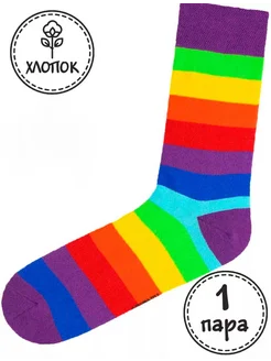Прикольные высокие носки с принтом и рисунком радуга 1 пара