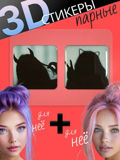 Стикеры на телефон 3d парные милые, набор из 12 штук