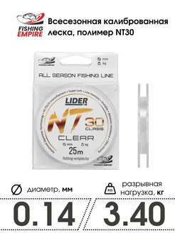 Леска LIDER NT30 CLEAR 25 м, 0.14 мм