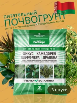 Грунт для фикуса хамедорея шеффлера драцены 3 литра