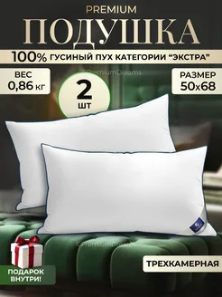 Подушка пуховая 50х70 (50х68) трех камерная натуральный пух