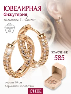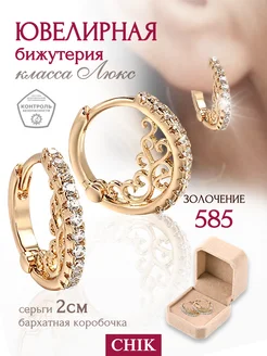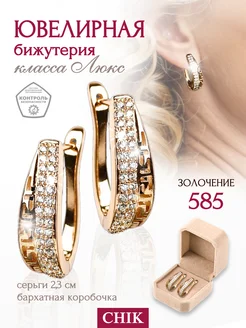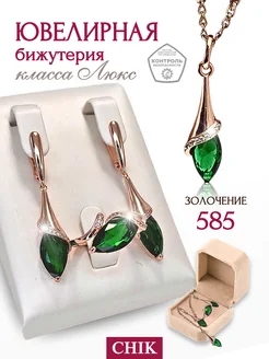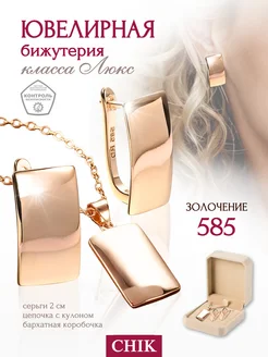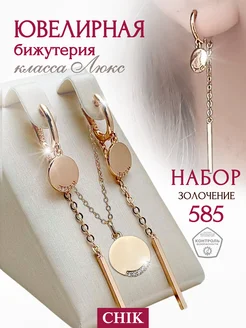 Серьги длинные и цепочка комплект бижутерии позолоченный