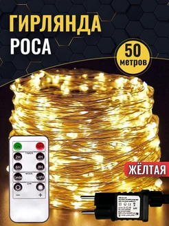 Гирлянда роса 50 метров желтая с зеленым проводом