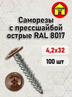 Саморезы с прессшайбой 4,2х32 RAL 8017 острые 100 шт