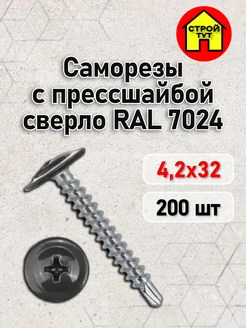 Саморезы с прессшайбой 4,2х32 RAL 7024 сверло 200 шт