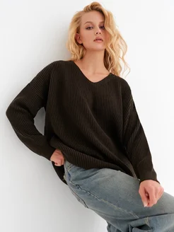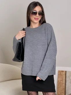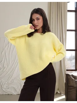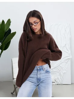Свитер тёплый оверсайз в полоску с пуговицами вязаный
