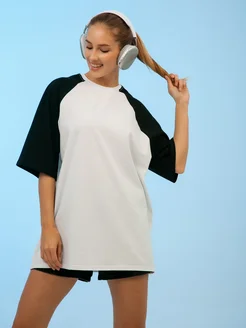 Футболка оверсайз мужская женская с широким рукавом реглан