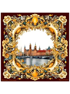 Платок шелковый на голову и шею 90х90см