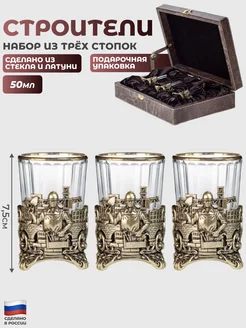 Набор из трёх стопок "Строители" из латуни и стекла (50 мл)