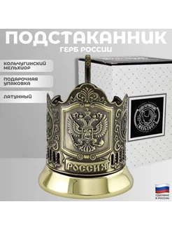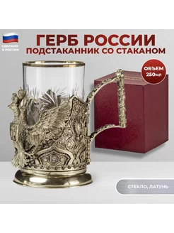 Латунный подстаканник "Герб России" со стаканом