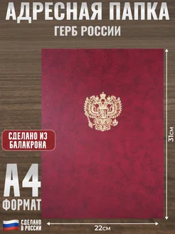 Адресная папка "Герб России" бордового цвета (А4, балакрон)