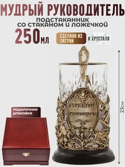 Подстаканник "Мудрый руководитель" со стаканом и ложечкой