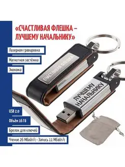 Флешка "Счастливая флешка. Лучшему начальнику" в чехле
