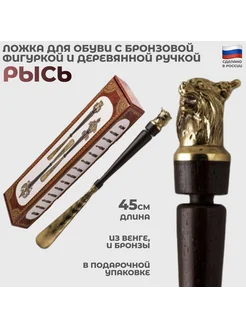 Ложка для обуви "Рысь" из бронзы и дерева венге (45 см)